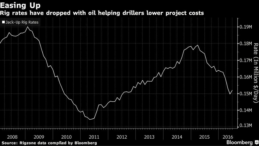 Chart: Rig Rates have attempted at recovery in 2016 capping oil price rises
