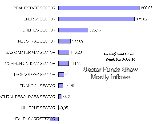 Chart: Sector Funds Show Mostly Inflows (between Sep 7 and 14) Source: ML