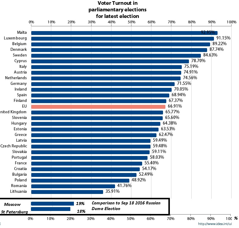 Rob Saunders a portfolio manager at imaginary Red Sun AM in Lincoln Nebraska has been evaluating political risk change following the Russian Duma elections on Sunday to make an investment bet. He was quite puzzled: on one hand the election is customarily risk positive event. Following which political life calms down and risk falls. However he was looking at turnout numbers in Moscow and St. Petersburg, and he was quite worried with just average of 18.5% voting of Russian elite.Ignore has clearly been the choice of the Russian elitist groups mostly residing in the major 2 cities. Risk , Rob thought, has probably risen rather then fallen in that case.