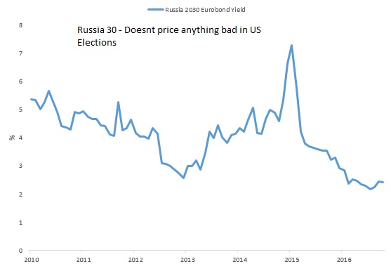 Chart: Russia 30 Eurobond is not yet pricing anything bad in US election.