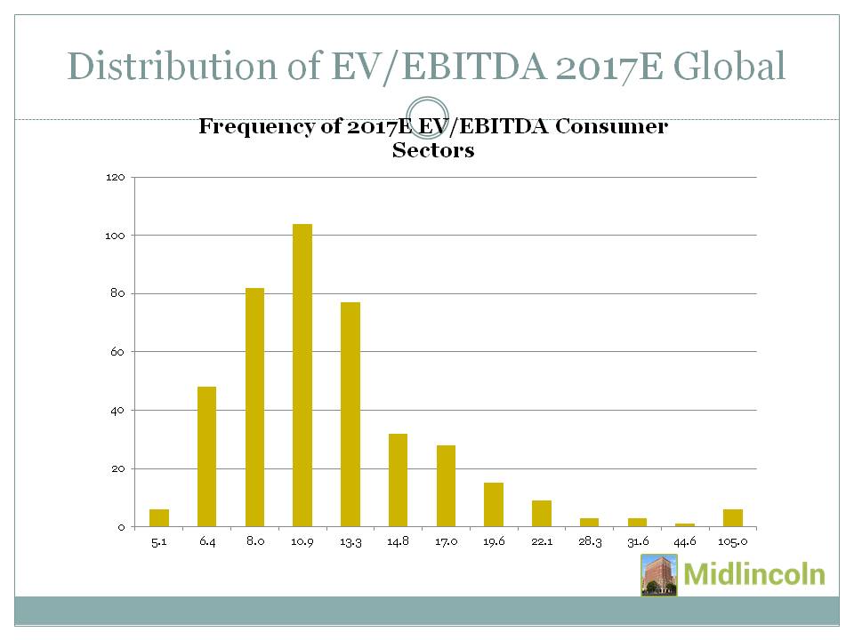 EV/EBITDA 2017E Distribution for Consumer Sectors