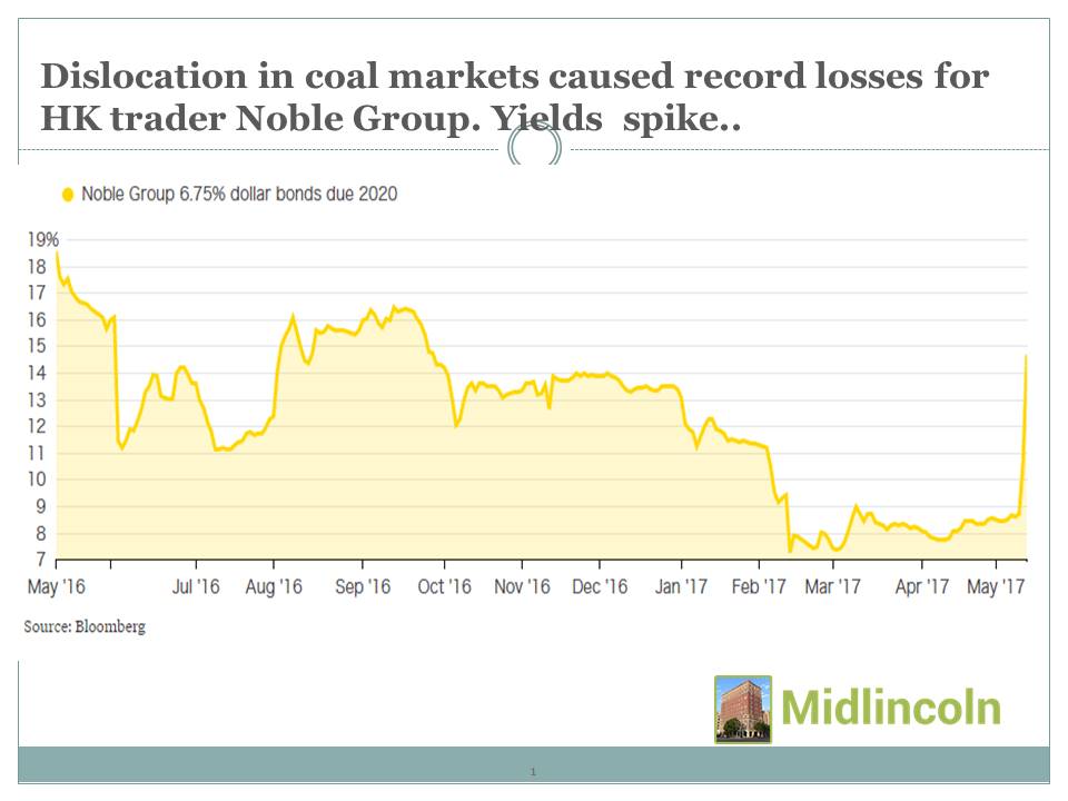 Spike in HK yields is mostly caused by dislocation in coal markets which caused record losses for HK trader Noble Group. Yields spike..