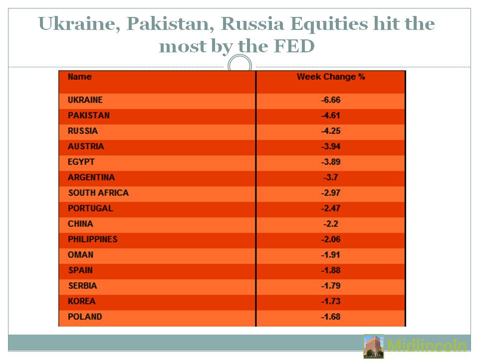 Ukraine, Pakistan, Russia Equities hit the most by the FED