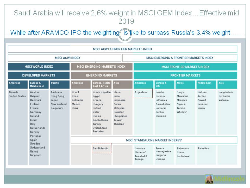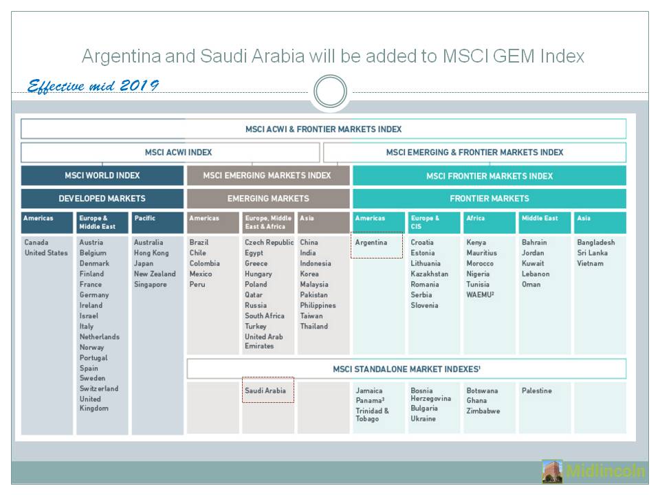 I live in a village where people still care about each other, largely. (Jan Karon) ![]() Source: ML Saudi Arabia will receive 2,6% weight in MSCI GEM Index…Effective mid 2019