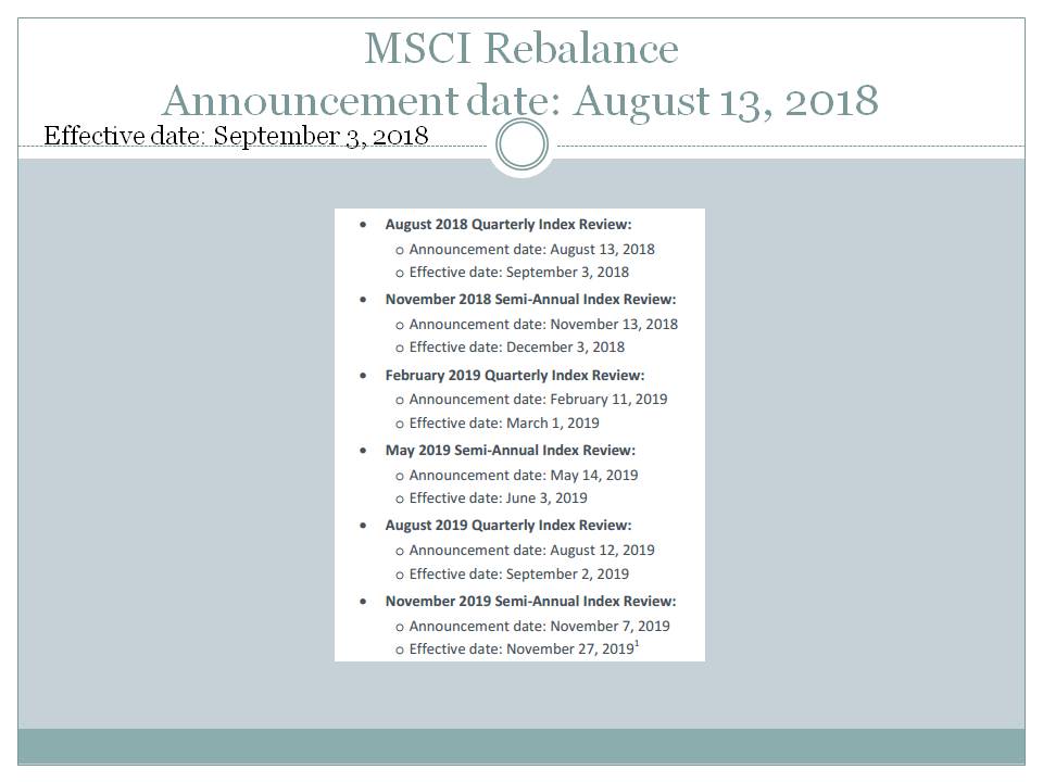 ![]() Source: ML MSCI Rebalance Announcement date: August 13, 2018
