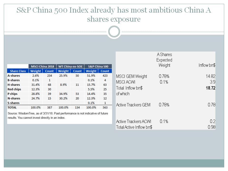 While after ARAMCO IPO the weighting is like to surpass Russia’s 3.4% weight ![]() Source: ML S&P China 500 Index already has most ambitious China A shares exposure