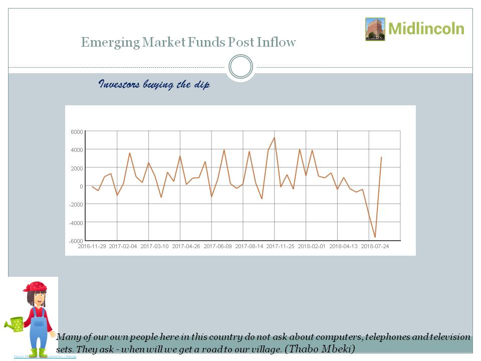 Chart: Saudi Arabia will receive 2,6% weight in MSCI GEM Index…Effective mid 2019While after ARAMCO IPO the weighting is like to surpass Russia’s 3.4% weight ![]() Source: ML Download file in Power PointKey Topics and NewsEmerging Market Funds Post Inflow