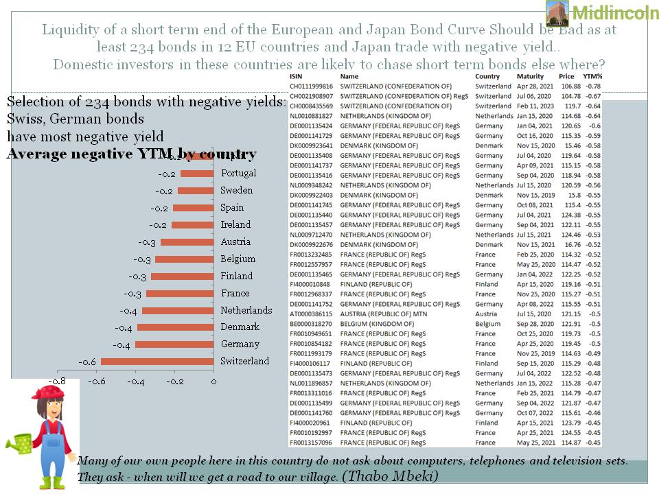 Selection of 234 bonds with negative yields: Swiss, German bonds have most negative yield Average negative YTM by country
